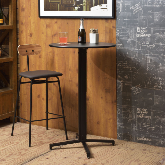 温かみのある木目調の天板と、圧迫感を与えにくいスチールの脚部を組み合わせたハイテーブル。
