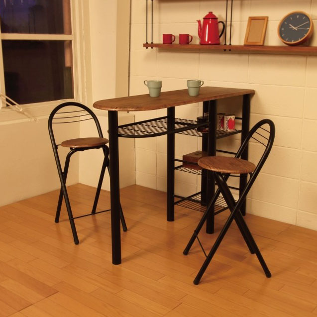 リビングにもキッチンにも手軽に置ける折り畳みハイテーブルセット。