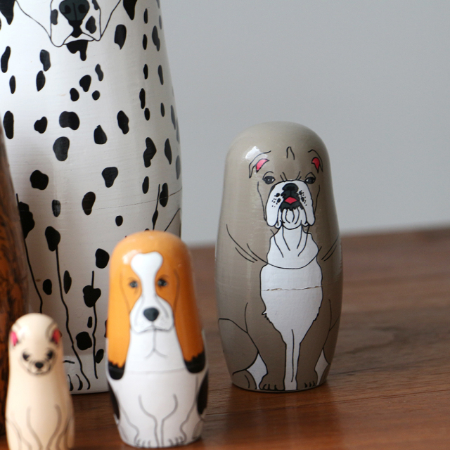 愛くるしい犬モチーフのマトリョーシカ。