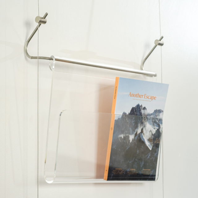ピクチャーレールの活用にもってこいなアクリルのマガジンラックです。