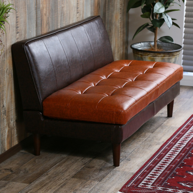 ツートンカラーが魅力のヴィンテージ調ベンチソファ。