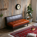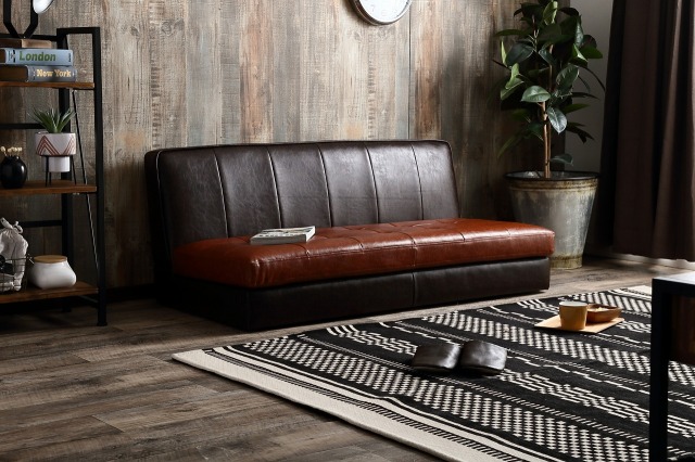 深みのあるキャラメルブラウンの絶妙な2色使いが魅力のベンチソファ「Comet」。