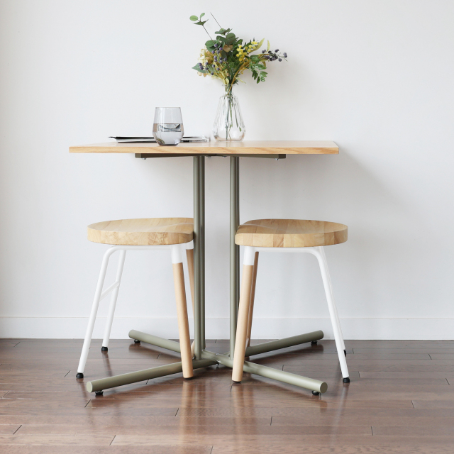 脚はビーチ材と合わせることでスチールの無機質さが和らぎ、