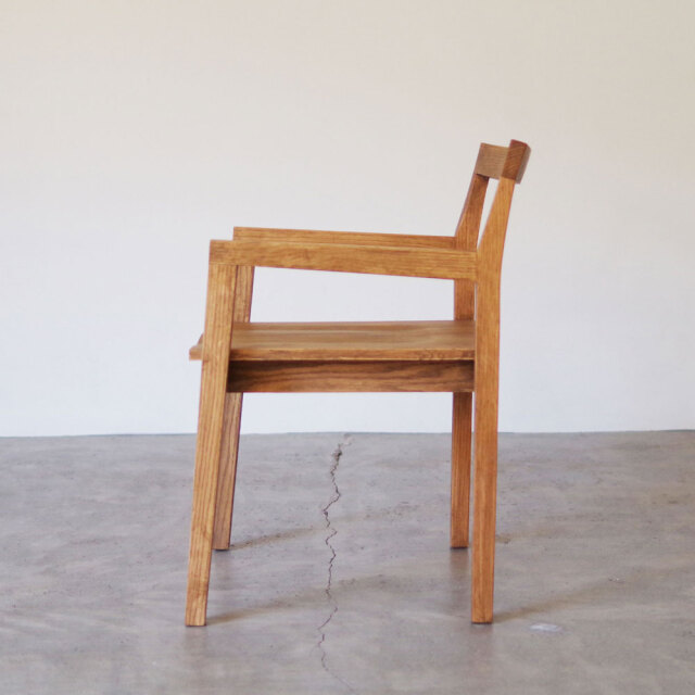背もたれの開いたデザインがスマートなオーク材を使用したチェア。美しい佇まいがまるでオブジェのよう。