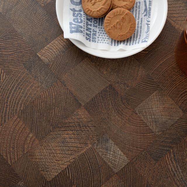 シンプルなデザインながら目を引く、木目調の天板は空間の雰囲気を高めるアクセントに。