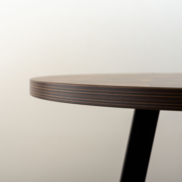 温かみのある木目調の天板と、圧迫感を与えにくいスチールの脚部を組み合わせたハイテーブル。