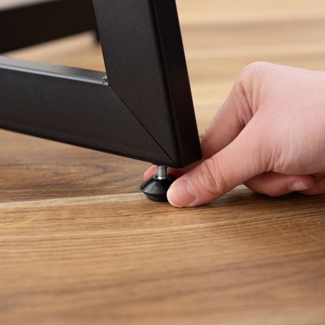 脚先にはアジャスターが付いているので、使用時のガタつき調整が可能。