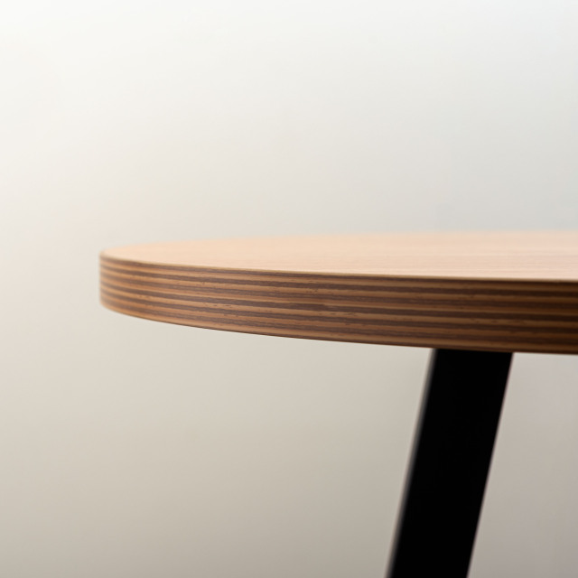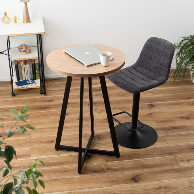 温かみのある木目調の天板と、圧迫感を与えにくいスチールの脚部を組み合わせたハイテーブル。
