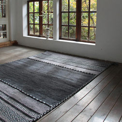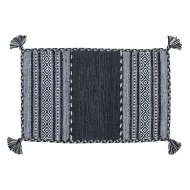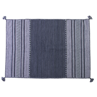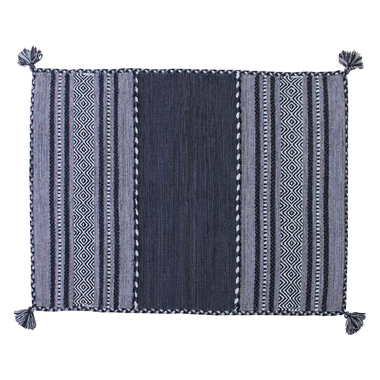 ソファ下などに最適なサイズ感のネイビー調シェニールラグ。