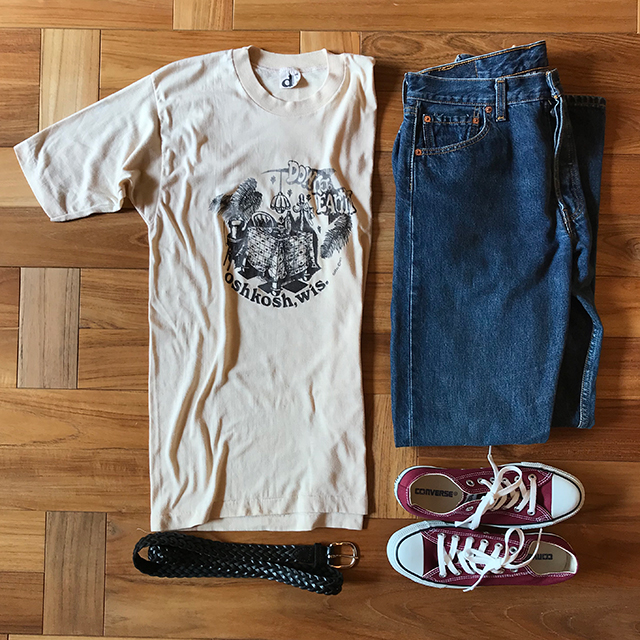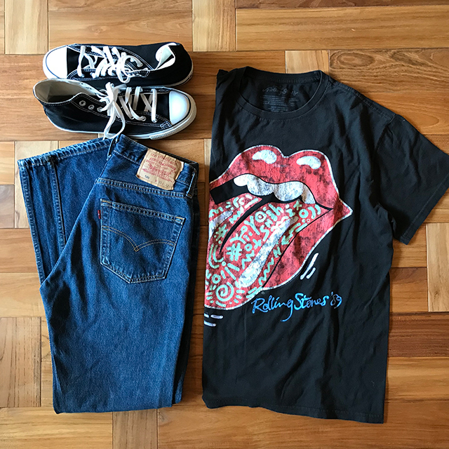 アーティストによるオリジナル・ペイントが施されたロックなTシャツコーデ。 【uno yoshihiko ART ローリングストーンズTシャツ】7992yenはこちら 【Levis501 デニムパンツ W30 L32】7992yenはこちら